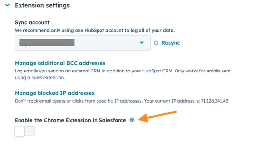 Sales teams die Salesforce CRM gebruiken, kunnen de HubSpot Sales Extension inschakelen in Salesforce door naar hun Extensions-instellingen te gaan onder Settings > General > Email > Extension Settings: