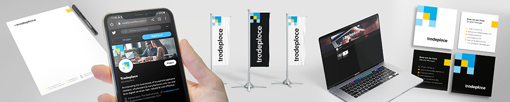 Na de succesvolle presentatie van het logo zijn wij aan de slag gegaan met een totale restyle van alle uitingen. Er is nagedacht over een herkenbare uitstraling die aansluit op het merkverhaal van Tradeplace. Denk hierbij aan visitekaartjes, briefpapier, social media, Office templates, videocall achtergronden, iconen, animaties en e-mailhandtekeningen. Daarnaast is de oude website volledig omgezet naar HubSpot CMS.